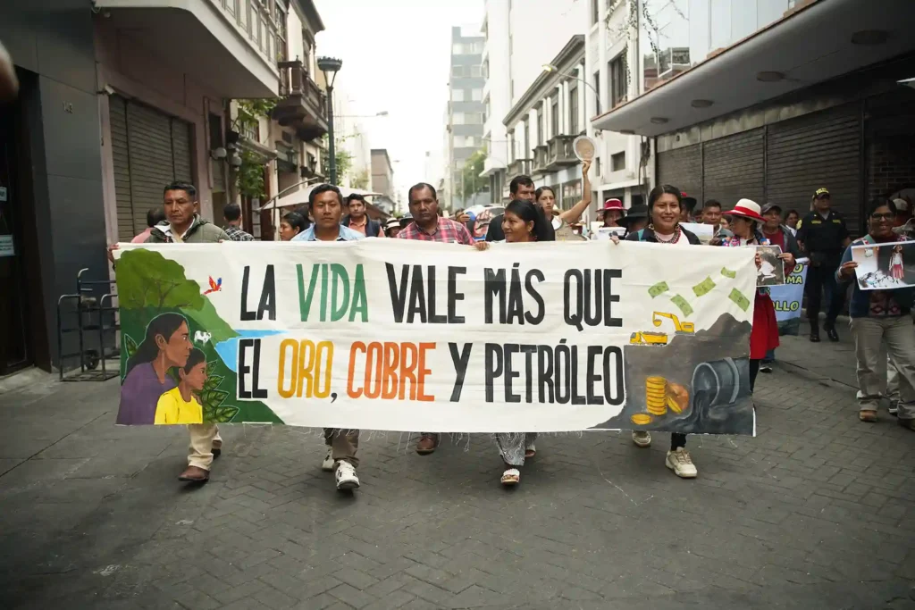 En la movilización participaron delegaciones de Pasco, afectadas por pasivos mineros de empresas extractivas como Volcan. También estuvieron ciudadanos de Espinar (Cusco), quienes llevan años esperando atención en salud tras detectarse mercurio en la sangre de niños y adultos generado por la compañía Antapacay.
