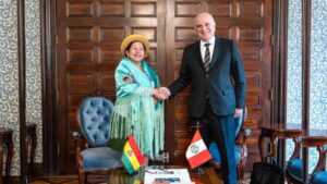Ministra de Relaciones Exteriores de Bolivia, Celinda Sosa, vicecanciller del Perú, Félix Denegri | Difusión
