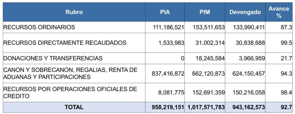 “El presupuesto para proyectos de inversión más o menos son S/.800 millones y un poco más, eso es lo que se ha manejado el año pasado. Ha llegado a S/.900 [millones] y un poco más”.