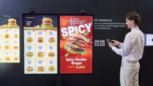 En paralelo, LG presentó LG SoundCast, una solución que introduce un nuevo nivel de personalización en la tienda. A través de tecnología basada en ubicación, permite sincronizar los contenidos de las pantallas con aplicaciones móviles, de modo que los clientes reciban información relevante, como promociones o disponibilidad de productos, justo en el momento en que interactúan con los displays.
