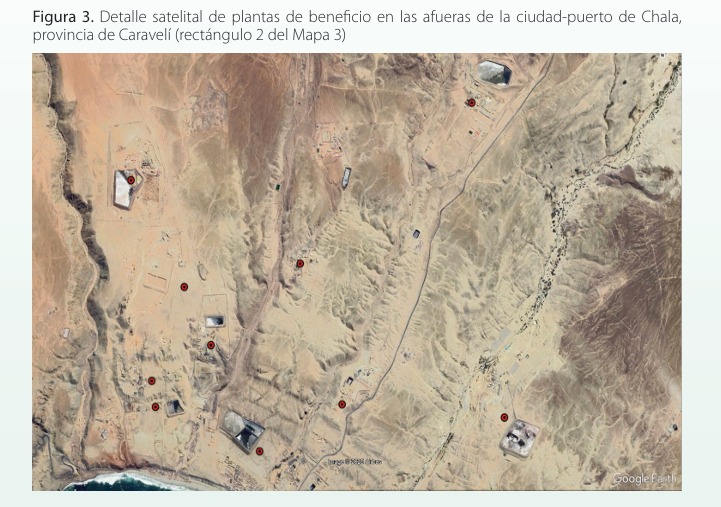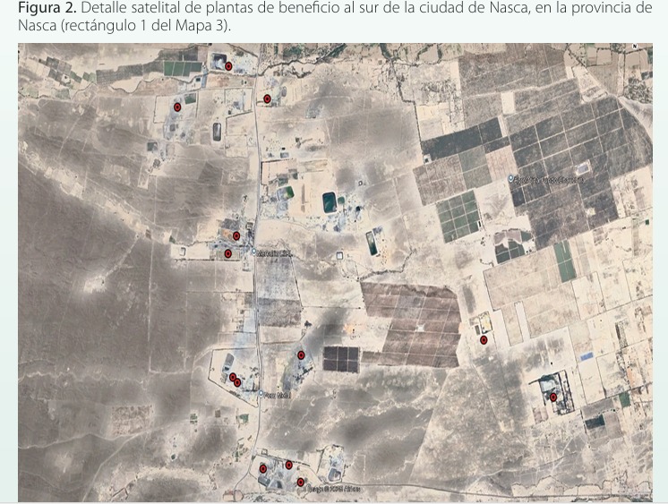 Entre Nasca (Ica) y Chala (Arequipa) hay instalaciones industriales con pozas de relaves, algunas relativamente grandes y otras que no figuran en los registros oficiales. De acuerdo con Pinzás, a primera vista, no forman parte de explotaciones mineras de mediana o gran escala. Hace ya mucho esta zona es un gran nodo que capta la producción de mineros artesanales, informales e ilegales.