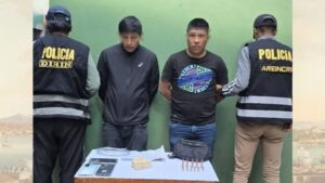 El intervenido principal es Milton César Ccama Chuquija (32), alias “Cesarín”, quien ya había sido detenido meses atrás, pero quedó en libertad tras una disposición del Ministerio Público. Junto a él fue arrestado Grimaldo Navarro Mamani (24), alias “Pájaro”. Ambos fueron reducidos en el jirón Emilio Romero, luego de que agentes del Área de Investigación Criminal los ubicaran en actitud sospechosa al interior de un vehículo Kia de placa Z8E-426.