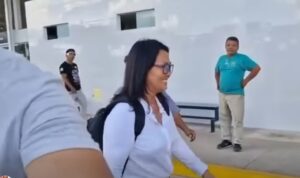 “¿Qué me va a tomar referente al señor Bruner? No voy a dar declaraciones”, fue su única respuesta antes de retirarse rápidamente del lugar.