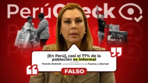 La información oficial disponible muestra que la tasa de empleo informal en el Perú alcanzó el 70.7% de la población ocupada en 2025. La afirmación de la candidata Fiorella Molinelli, al señalar que “casi el 77% de la población es informal”, no coincide con el dato oficial ni con la población que mide el indicador, por lo que Perú Check califica la declaración como falsa.