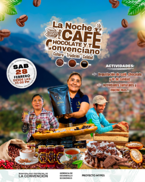 Durante toda la jornada festiva se ofrecerá una degustación gratuita de café, chocolate y té de alta calidad para todos los asistentes al evento. Además de la oferta gastronómica, los organizadores han preparado diversas actividades culturales para el público asistente que acuda a la Plaza de Armas. Con esta nueva edición, la comuna provincial busca promover iniciativas orientadas a dinamizar activamente la economía local de toda la provincia de La Convención. La feria busca visibilizar el arduo trabajo diario de los productores de La Convención que cultivan estas tierras fértiles con gran dedicación.