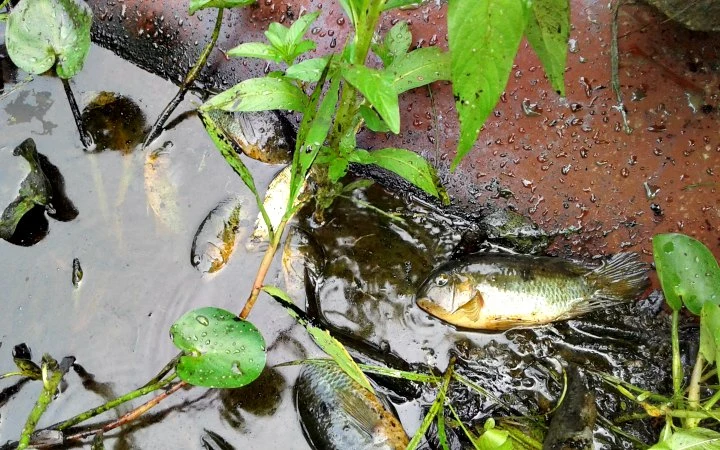 Peces muertos debido a la contaminación de petróleo por derrame ocurrido en el Oleoducto Norperuano. (Foto: Lizardo Vásquez)