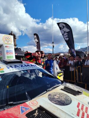 En el marco de la etapa Andahuaylas–Cusco, los pilotos auspiciados por VOLT, Richard Palomino y Raúl “El Mono” Orlandini, fueron recibidos entre aplausos y muestras de cariño por parte del público cusqueño, agradeciendo también el respaldo de la marca.